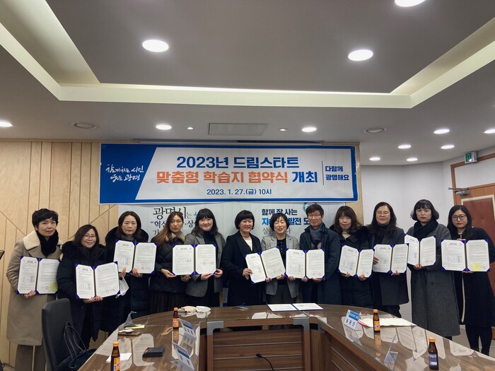 광명시(시장 박승원)는 시 드림스타트 사례관리 아동을 위해 27일 ㈜대교눈높이 등 7개 학습지사와 학습지 지원 업무협약을 체결했다.