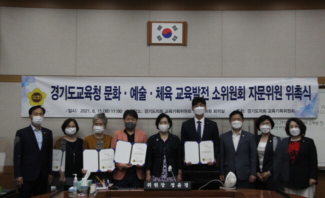 한편, 교육기획위원회 정윤경 위원장은 회의 시작 전에 경기도교육청 문화예술.체육 교육발전 소위원회 활동을 지원할 자문위원을 위촉했다.