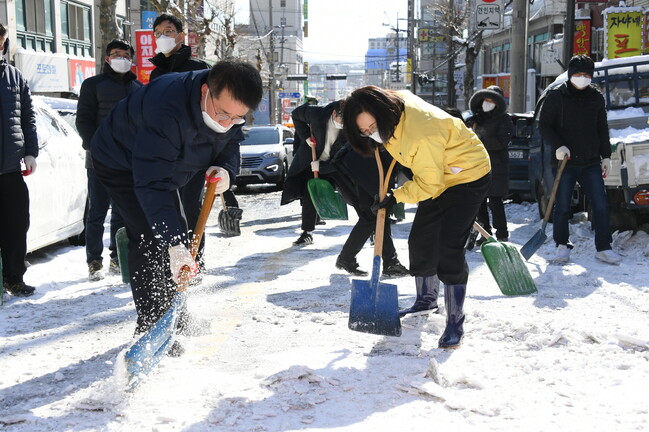또한 7일 오전 민간장비 18대를 추가로 긴급 투입하고 필수 인력을 제외한 모든 공직자를 50개 동에 배치, 버스정류장과 도로 주변 인도, 골목길 이면도로 등에서 제설작업을 실시하고 있다.