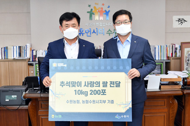 수원농협과 농협수원시지부는 25일 오후 3시 30분 염태영 수원시장 집무실을 방문해 쌀을 기부했다.수원시는 이를 4개 구에 50포씩 배분하고, 저소득 가정 등 취약계층에 전달할 예정이다.