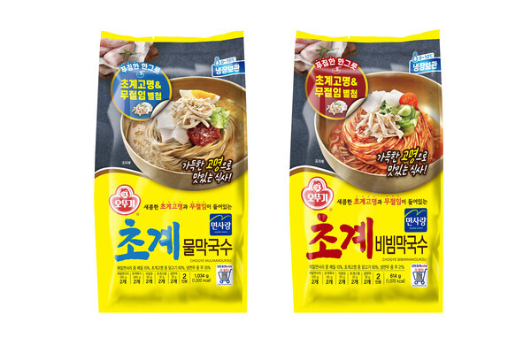 오뚜기 관계자는 ‘때이른 더위가 찾아오면서 시원한 음식에 대한 수요가 늘고 있다는 점에 주목해, 추가 재료 없이도 푸짐하게 즐길 수 있는 ‘초계 막국수’ 2종을 출시했다‘고 밝혔다.