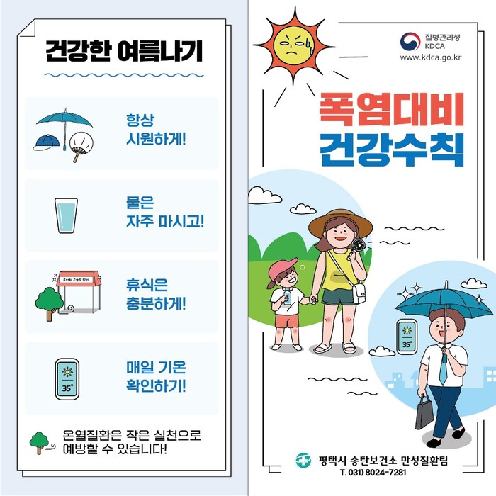 평택보건소 직원은 “해마다 여름철 기온상승이 심각해지고 있는 요즘, 올여름에는 각별히 더 홀로 어르신과 거동 불편 등 취약계층에 더 큰 관심과 정서적 지지를 통해 모두가 건강한 여름을 지낼 수 있도록 최선을 다하겠다”라고 말했다.