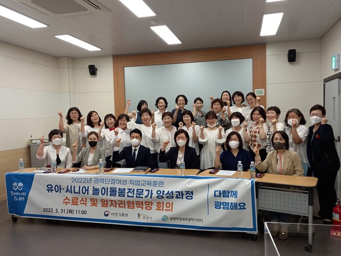 사진/광명 여성새로일하기센터는 5월 31일 직업교육 훈련 유아·시니어 놀이돌봄 전문가 양성 과정 수료식을 가졌다(사진제공=광명시)