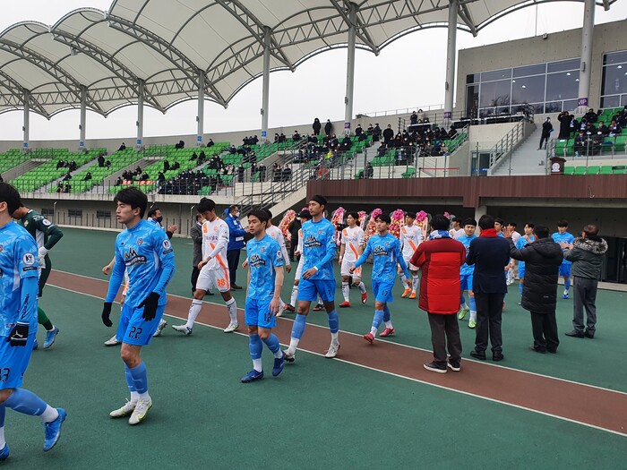 전반전 강원FC 선수들의 긴 리치와 폭발적인 공격에 아슬아슬한 위기의 순간도 몇 번 있었지만, 윤대성 감독의 노련하고 안정적인 운영, 골키퍼 공인성 선수의 선방으로 위기를 넘기며 분위기를 가져오기 시작했다. 그 결과 관중들의 열띤 응원에 힘입어 첫 개막전 경기를 1대0으로 승리하며 마무리 할 수 있었다.