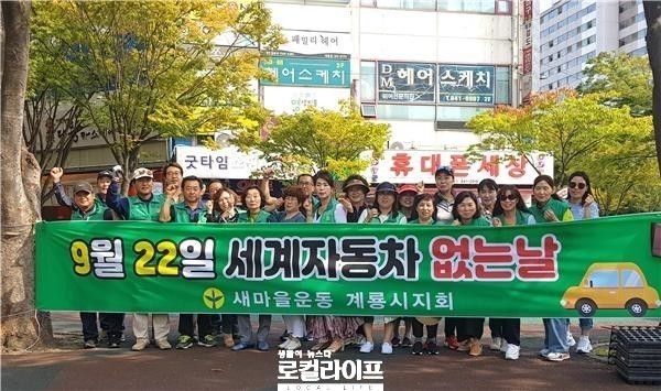 그 일환으로 계룡시는 19일, 엄사면 엄사광장에서 새마을운동계룡시지회와 함께 ‘9월 22일은 차 없는 날’을 주제로 한 홍보 캠페인을 전개했다.