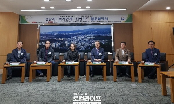 이 자리에는 은수미 성남시장, 김성종 경기도개인택시운송사업조합 성남시조합장, 강길원 성남시법인택시협의회장, 한만선 전국택시노동조합연맹 경기동부지역 지부장, 곽정열 성남시법인택시노동조합연합회 의장, 안중선 신한카드 MF사업 그룹장 등이 참석해 협약서에 공동 서명했다.