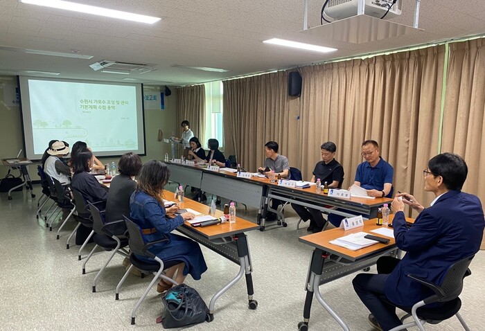 이날 보고회에는 송성덕 수원시 공원녹지사업소장 등 ‘수원시 도시숲 등의 조성·관리 심의위원회 위원’, 수원시정연구원 연구위원, 가로수정원사(시민대표) 등이 참석했다.