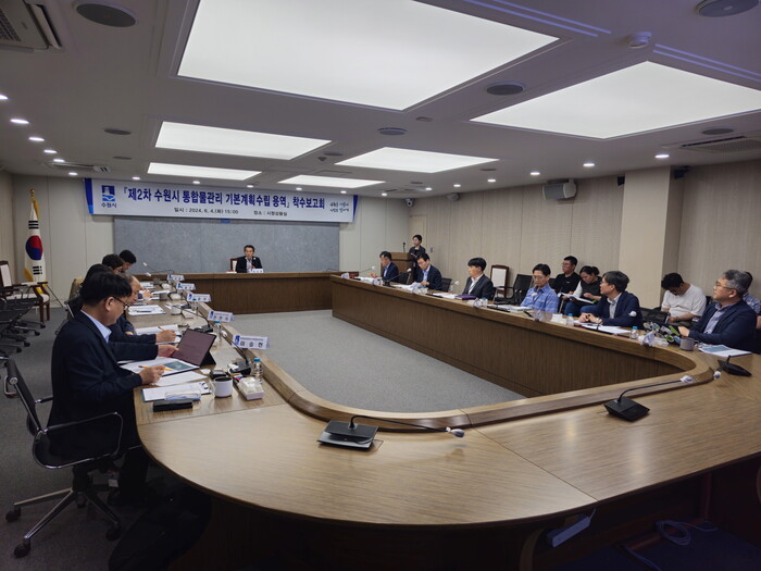 수원시는 4일 시청 상황실에서 ‘제2차 수원시 통합물관리 기본계획 수립 용역 착수보고회’를 열고, 사업 추진 방향을 보고했다. 수원 전 지역을 대상으로 2025년에서 2034년까지 10년간의 통합물관리 기본계획을 수립하는 것이다. 용역은 사단법인 한국수생태복원협회가 담당한다.