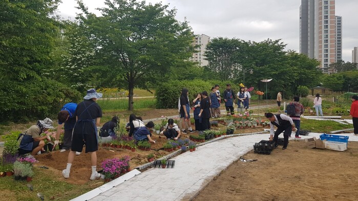 사진/단국대학교 학생들이 정원을 조성하고 있다.(사진제공=수원시)