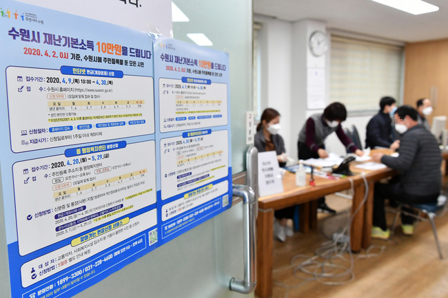 수원시민을 비롯한 모든 경기도민에게 1인당 지역 화폐 10만 원을 지급하는 ‘경기도 재난기본소득’은 4월 9일부터 온라인 신청을 받고 있다. 온라인 신청은 4월 30일까지 홈페이지(https://basicincome.gg.go.kr)에서 할 수 있다.