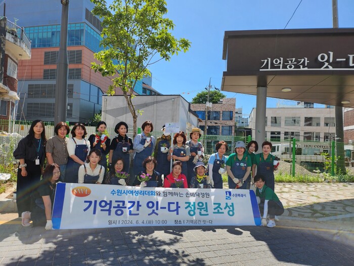 수원시 여성리더회(회장 김수민)가 기억공간 ‘잇-다’ 인근 자투리 공간에 손바닥정원을 조성했다.