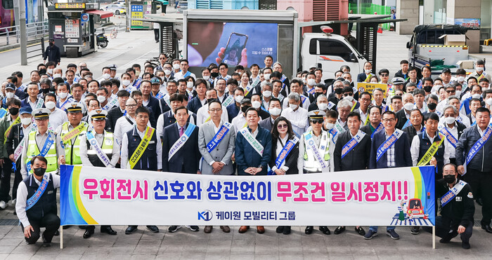 이재준 시장과 삼운회교통봉사대원, K1모빌리티 임직원·노동조합원 등 160여 명은 ‘우회전 횡단보도 일시정지하세요’, ‘꼬리물기를 하지 맙시다’, ‘신호등 지키면 안전이 가깝고, 서두르면 사고가 가깝다’ 등 교통사고 예방 구호를 외치며 시민들의 참여를 독려했다.