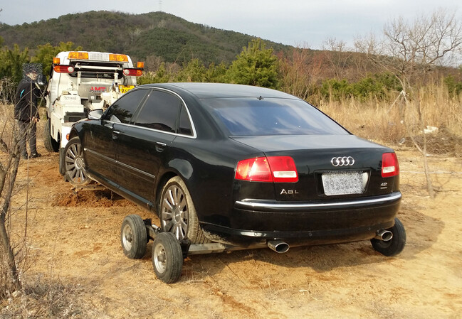 사진/대포차량 추적 기동반이 상습 체납차량을 견인하고 있다.(사진제공=수원시)
