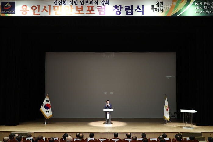 이상일 용인특례시장이 지난 5일 오후 용인 문예회관에서 열린 ‘용인시민안보포럼 창립 기념식’에 참석해 국방과 안보태세의 중요성을 강조했다.