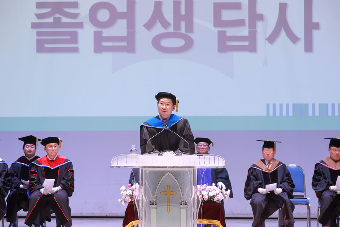 이날 행사에는 대학 교무위원과 졸업생·학부모 등 1000여 명이 참석했다. 강남대는 이날 이 시장과 함께 최성균 사단법인 미래복지경영 회장에게 명예박사학위를, 박사 13명·석사 50명·학사 348명 등 413명에 학위를 수여했다. 강남대는 국내대학 최초로 1953년 사회사업학과를 개설하는 등 우리나라 사회복지학의 초석을 다졌다는 평가를 받고 있다.