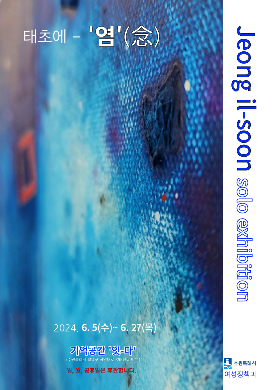 수원시 기억공간 ‘잇-다’가 27일까지 정일순 작가의 개인전 ‘태초에 -염(念)’을 개최한다.