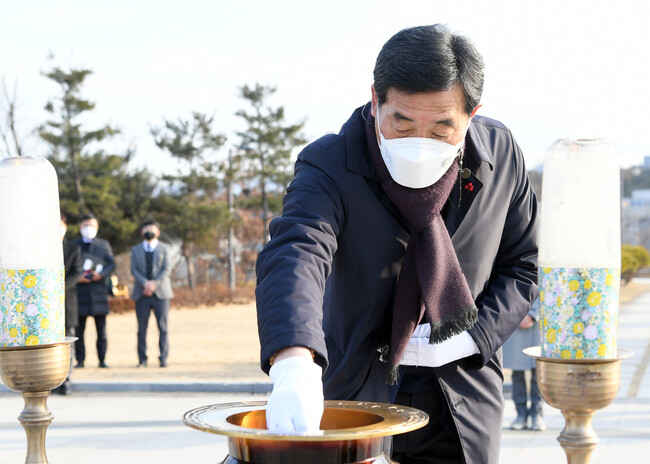 [로컬라이프] 윤화섭 안산시장은 2021년 1월 1일 오전10시 안산 현충탑에서 신년 참배로 새해를 시작했다. 이번 참배는 코로나19 예방을 위한 방역수칙을 준수하여 진행했다.