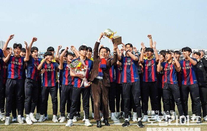| ▲ 이재준 수원특례시장과 수원FC 선수단. (사진출처=이재준 페이스북) |