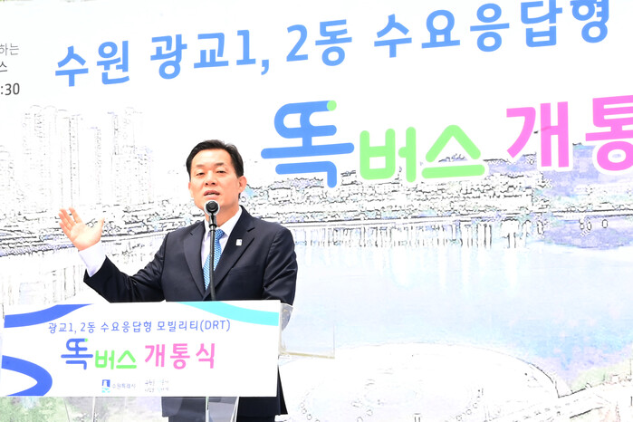 이재준 수원특례시장은 1일 광교역사공원에서 열린 ‘똑버스 개통식’에서 “어르신들이 똑버스를 편리하게 이용할 수 있도록, 어르신들에게 앱 이용 방법을 잘 설명해 달라”고 당부했다.