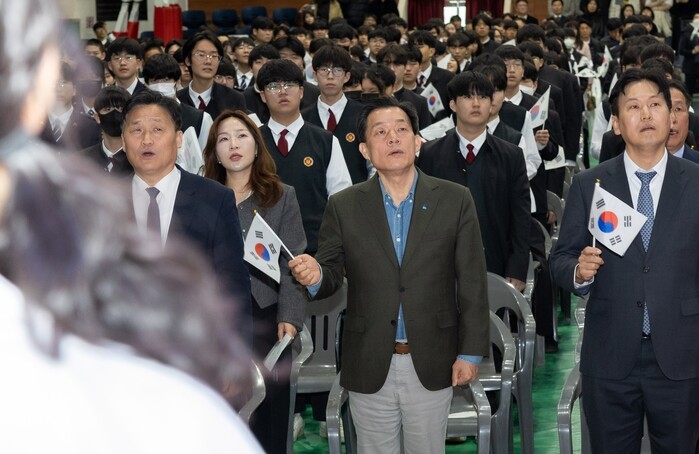 [수원=로컬라이프] 송준형 기자 = 이재준 수원특례시장은 1일, 삼일절을 맞아 “대한독립 만세!” 107년 전, 목숨 걸고 외쳤던 그 결연한 함성을 삼일공업고등학교 학생들과 함께 다시 외쳐본다고 말했다.