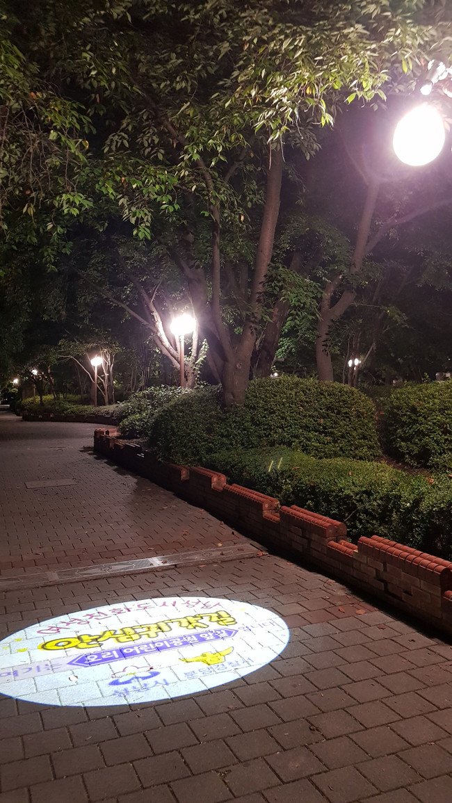 <사진/ 여성가족과, 성남 구미동 오리어린이 공원 밤길을 밝히는 '여성 안심 귀갓길 로고젝터'>