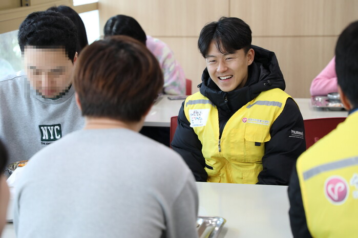 지동원 선수는 식사 중인 장애인에게 직접 젓가락으로 반찬을 옮겨주면서 말벗이 돼 주기도 했다.