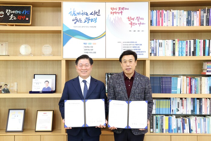 광명시(시장 박승원)는 16일 시청 시장실에서 광남새마을금고 복지재단(이사장 조용호)과 임산부 및 24개월 이하 영아 가정의 이동 편의를 돕는 아이조아 붕붕카 운영에 관한 업무 협약식을 가졌다.
