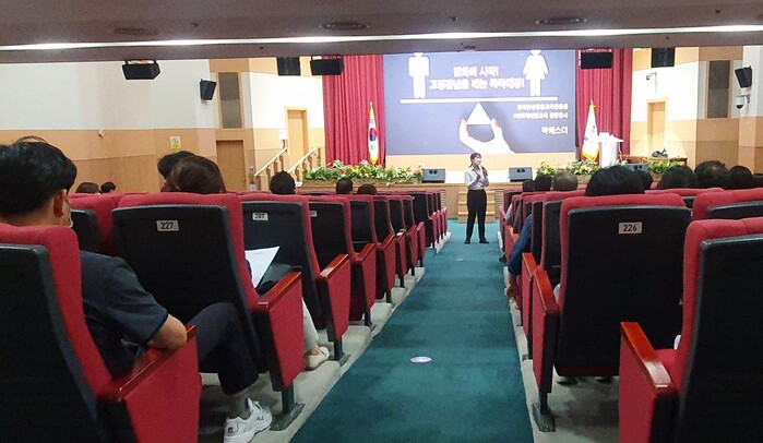 ‘변화의 시작! 고정관념을 깨는 폭력 예방 교육’을 주제로 강의한 박에스더 한국양성평등교육진흥원 소속 전문 강사는 ▲남성과 여성에 대한 젠더(성별) 고정관념 사례 ▲젠더 고정관념으로 인한 4대 폭력 발생 사례 ▲젠더 고정관념이 조직에 미치는 영향 ▲4대 폭력 예방법 등을 설명했다.