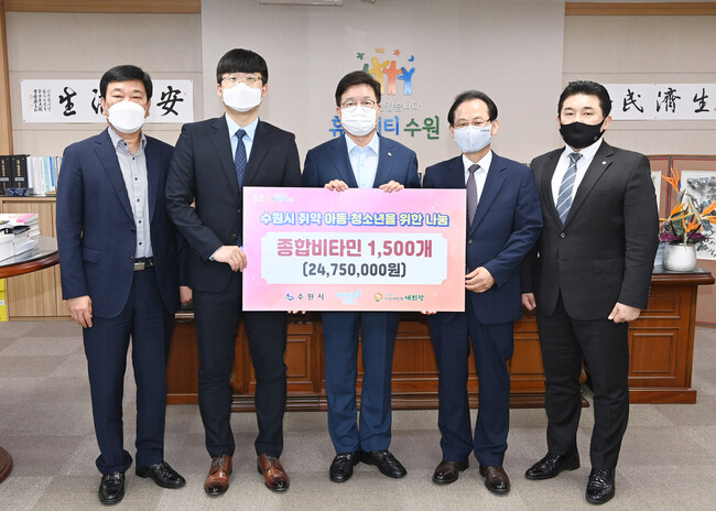 (사)더불어함께새희망과 ㈜비타민엔젤스가 “취약계층 아동·청소년에게 전달해 달라”며 수원시에 2500만 원 상당 종합비타민 1500개를 기부했다.