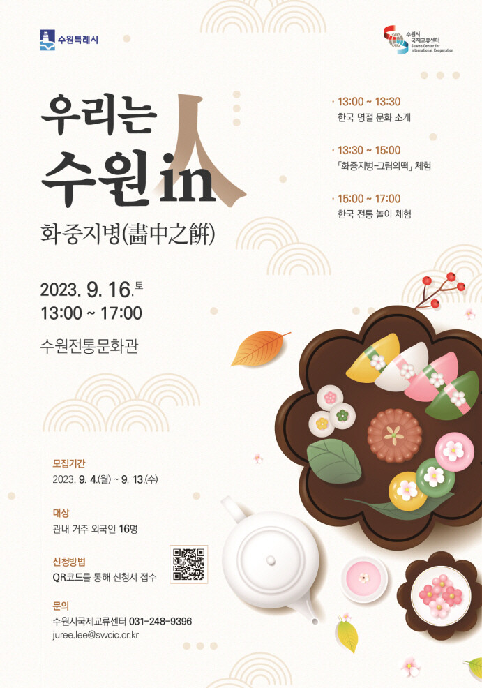 수원시국제교류센터가 제3회 수원시 외국인 지역이해 프로그램 ‘우리는 수원 in(人) - 화중지병(畵中之餠)’에 참여할 관내 거주 외국인 16명을 9월 13일까지 모집한다.