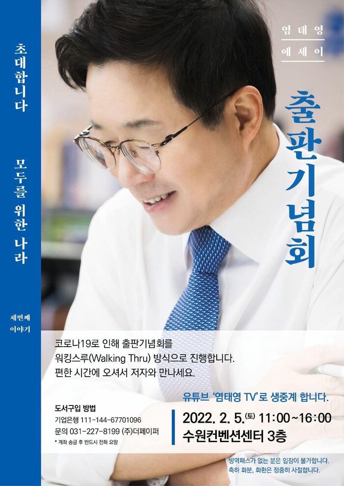[로컬라이프] 송준형 기자 = 염태영 수원시장은 28일, “「모두를 위한 나라 - 세 번째 이야기」 출판 기념회”를 오는 2월 5일 연다고 밝혔다.