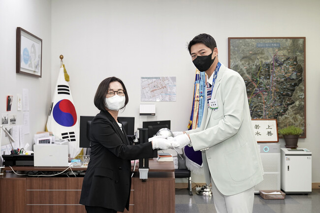 은 시장은 오상욱 선수에게 금메달을 다시 한번 걸어주며 “진심으로 축하드린다. 올림픽이 1년 연기되며 어수선한 상황과 함께 개인전 세계랭킹 1위를 고수하며 받은 기대 등으로 어깨가 매우 무거웠을 텐데 이 모든 어려움을 이겨내고 이뤄낸 결과라 더욱 장하고 자랑스럽다.”며 축하와 격려를 전했다.