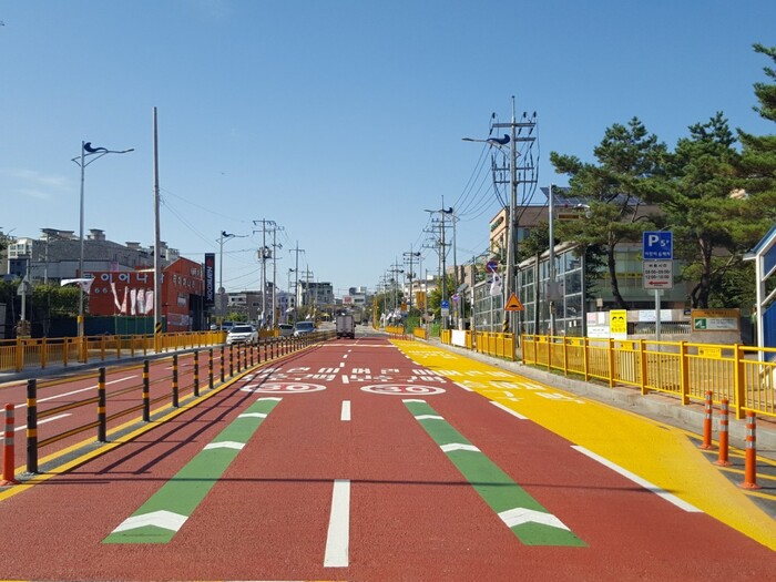 이에 시는 학생들의 등하교 교통안전을 확보하고 교통흐름에 방해가 되지 않도록 도로선형을 조정하고 중앙 안전지대를 줄여 도로를 확장하여 학생들이 안전하게 승하차할 수 있는 ‘안심 승하차존’을 조성했다.