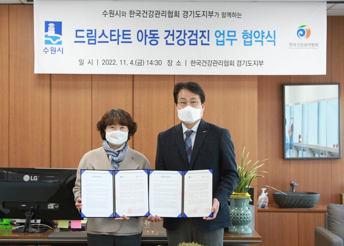 수원시와 한국건강관리협회 경기도지부가 ‘2022년 드림스타트 아동 건강검진 지원 협약’을 체결하고, 드림스타트 아동을 대상으로 건강검진 지원을 협력하기로 했다.