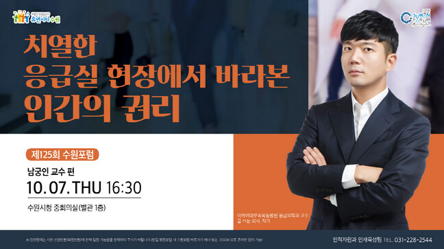 수원시는 7일 오후 4시 30분 ‘치열한 응급실 현장에서 바라본 인간의 권리’를 주제로 제125회 수원포럼을 연다.
