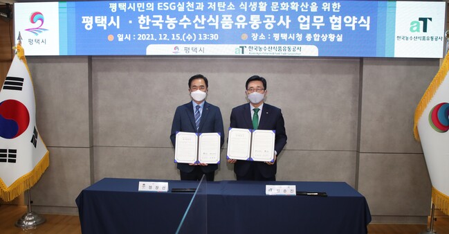 한편, 이번 평택시와 유통공사의 협약으로 우리 모두와 미래세대를 위해 먹거리의 생산・유통・소비 전 과정에서 발생하는 온실가스 배출량을 줄여 ‘농장에서 식탁까지 탄소중립’을 실천하는 저탄소 식생활 캠페인인 ‘그린푸드 데이 캠페인’을 확산하는 계기를 마련해 줄 것으로 기대한다.