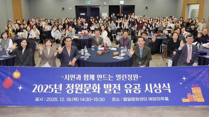 수원특례시(시장 이재준)는 18일 팔달문화센터 예당마루홀에서 ‘2025년 정원문화 발전 유공 시상식’을 열었다.