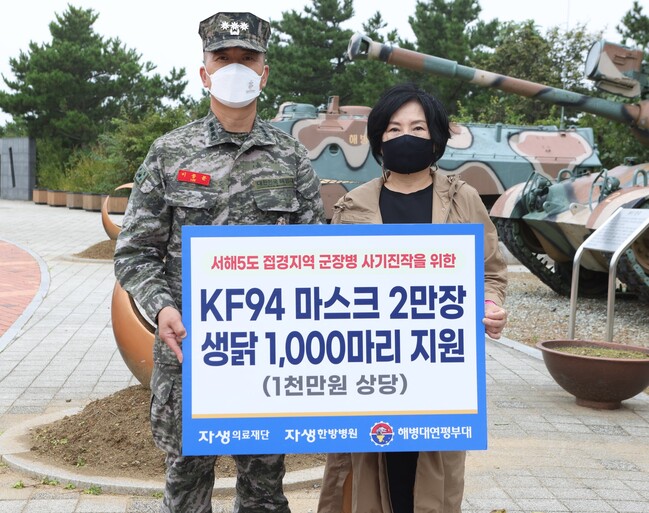 사진/자생의료재단은 지난 6일 해병대 연평부대에 코로나19 예방과 건강 증진을 위한 격려물
