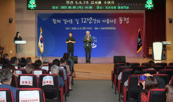 곽상욱 오산시장은 이 날 감사패 수여식에서“우리 오산시가 지난 12년간 굉장히 많은 발전을 이루어 왔다”며, “수달이 돌아온 오산천과 전국에서 내로라하는 AI교육도시가 된 오산시의 명성은 모두 시민분들께서 만들어 주신 것이다”라며 감사를 표했다