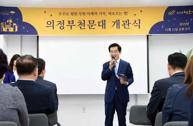 [의정부=로컬라이프] 송준형 기자 = 의정부시(시장 안병용)는 11월 11일 추동공원 송산배수지 체육시설 부지에 ‘의정부 천문대’를 신축 이전하고 개관식을 개최했다.
