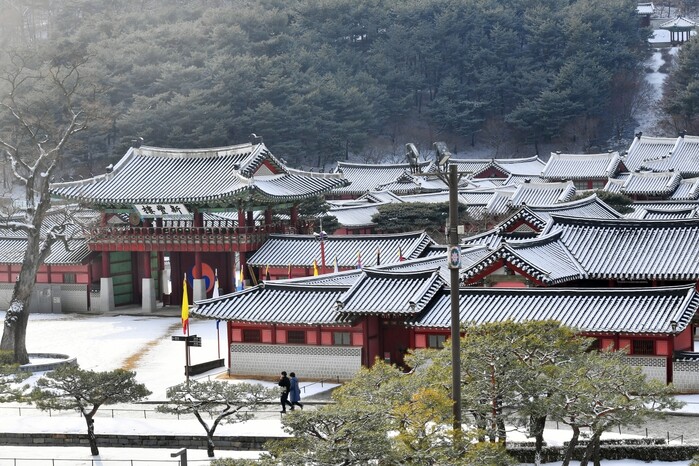 사진/ 2026년 설 명절 연휴 기간 중 매일 운영하는 수원화성행궁의 설경.(사진제공=수원시)