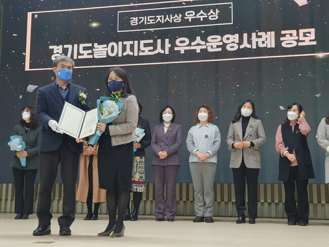 경기수원시육아종합지원센터가 경기도북부육아종합지원센터 주관한 ‘2021년 놀이지도사 우수 운영사례 공모전’에서 경기도지사상(우수)을 받았다. 시상식은 11월 30일 경기도 북부청사 2층 평화누리홀에서 열렸다.