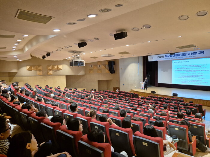 교육에서는 직장 내 괴롭힘의 개념 및 판단 기준, 다양한 유형과 사례를 통해 직장 내 괴롭힘에 대한 경각심을 높이는 한편, 조직 내 상ㆍ하급자 간의 소통과 배려의 중요성을 강조했다.
