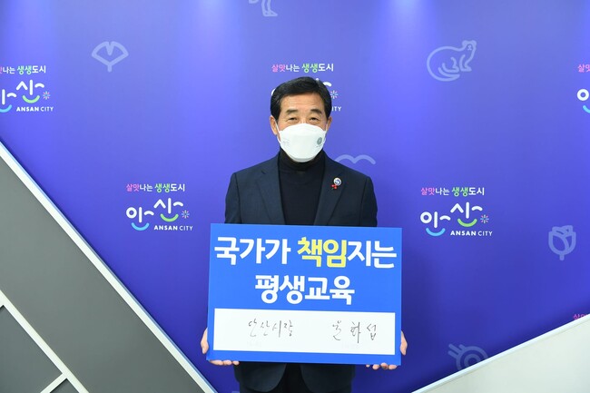 [로컬라이프] 송준형 기자 = 윤화섭 안산시장은 10일, ‘국가가 책임지는 평생교육’, ‘보편적 평생교육 실현’을 위한 <100만인 서명운동>의 성공적인 달성을 위해 SNS 챌린지에 동참했다.