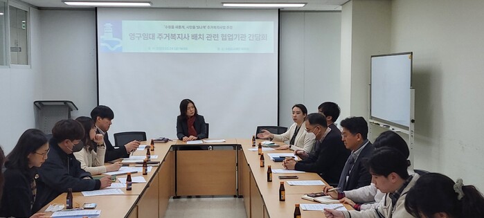 수원시는 24일 수원도시재단에서 ‘영구임대 거주민 주거복지 지원체계 강화 간담회’를 열고, ‘영구임대 주거복지사 배치사업’ 추진 방안 등을 논의했다.