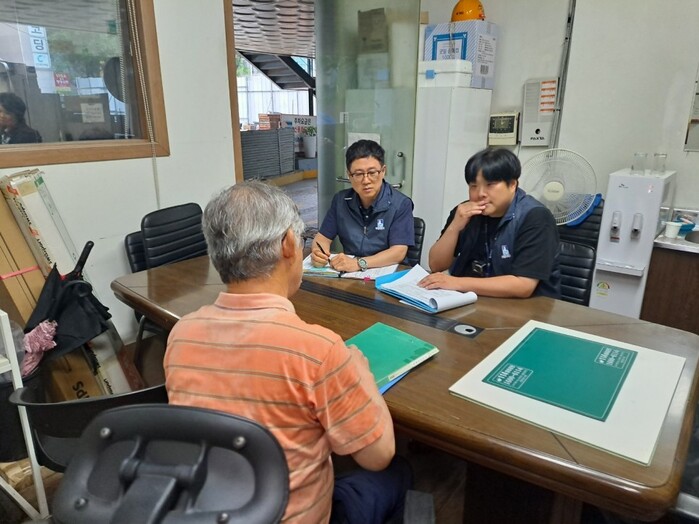 사진/ 수원시 체납추적팀 직원이 체납자를 만나 체납액 납부를 독려하고 있다.(사진제공=수원시)