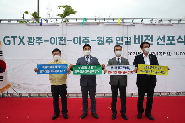 엄태준 이천시장은 3일 오전 11시 경기 광주역에서 열린 「광주·이천·여주·원주 GTX 비전선포식」에서 무엇보다 강원도 원주시가 경강선 GTX유치에 함께하게 된 점은 대단히 고무적이라면서 크게 환영한다고 밝혔다.