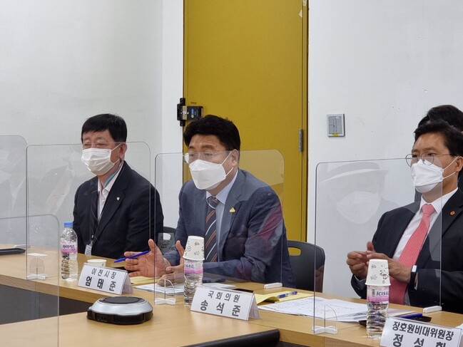 엄태준 이천시장, 송석준 국회의원, 정성화 장호원비상대책위원장은 24일 중부내륙철도(이천~문경철도) ‘112역’ 역사명 제정과 관련해 국토교통부를 항의 방문했다.