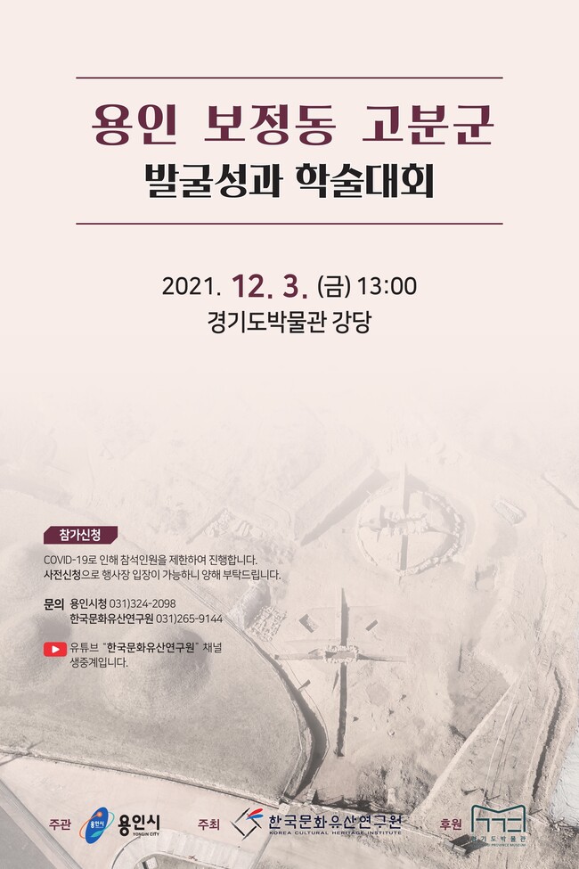 학술대회는 한국문화유산연구원의 공식 유튜브 채널에서 생중계되며, 현장 참여를 원하는 경우 한국문화유산연구원(031-265-9144)으로 신청하면 된다.