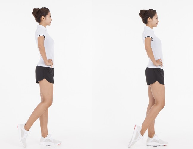 발목 주변의 근육과 인대를 풀어주는 데에는 ‘발목 눌러 스트레칭’이 효과적이다. 우선 한 쪽 발끝을 뒤로 뻗어 지지하고 발등 쪽을 서서히 지면 쪽으로 발등이 당긴다는 느낌으로 눌러준다. 15초간 자세를 유지하고 발을 바꿔 반대쪽 발도 5회씩 반복한다. 이때 너무 세게 누르지 말고 약간 발목이 당긴다는 느낌으로 가볍게 진행한다.